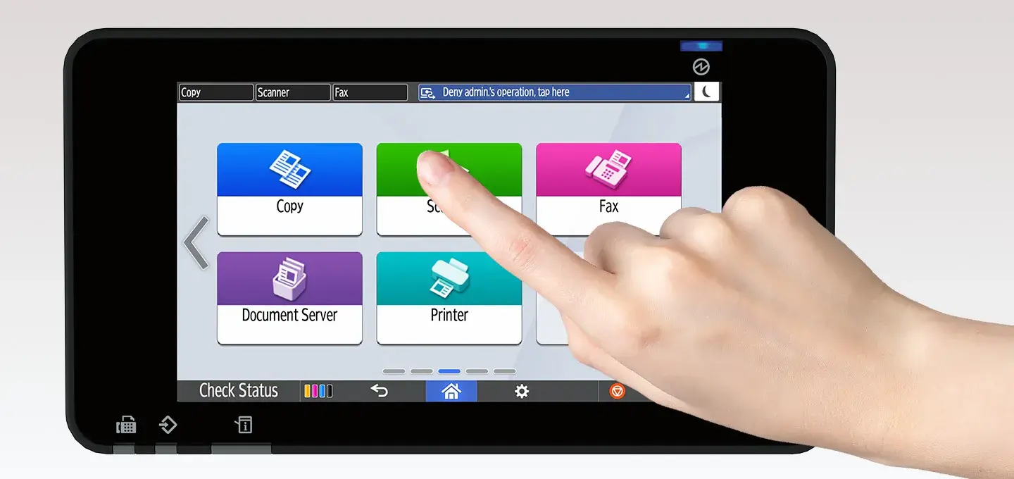 Với Bảng điều khiển thông minh 10,1 inch trực quan, tích hợp phím mềm, máy in đa chức năng Ricoh của bạn thậm chí còn dễ dàng chạm, vuốt và hoàn thành công việc hơn nhờ hàng loạt tính năng hữu ích, bao gồm màn hình chính có thể tùy chỉnh hoàn toàn và khả năng duyệt internet đầy đủ. Khi bạn muốn đơn giản hóa và cải thiện quy trình xử lý tài liệu tại nơi làm việc, dòng máy in đa chức năng thông minh Ricoh - với công nghệ Bảng điều khiển thông minh - mang đến cho bạn chất lượng in ấn cao, quy trình làm việc hiệu quả cao và chi phí vận hành thấp.