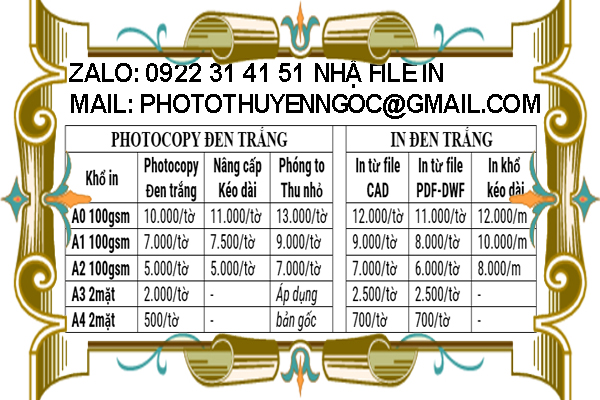 - Chúng tôi cung cấp cả in kỹ thuật số và in phun, Photocopy nhanh chóng, giá rẻ. Và chúng tôi được trang bị để xử lý tất cả các dự án của bạn một cách kịp thời.